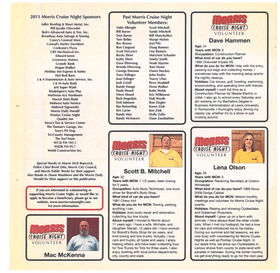 The Morris Cruise Night Committee would like to thank all our special sponsors and everyone who has made our Cruise Night such a great success every year. Please be sure to visit their businesses. A huge thank you to all of our volunteers. We would like to thank the City of Morris, the Morris Police Department, and the Morris Public Works Department for all of their assistance and support during each of these events.
